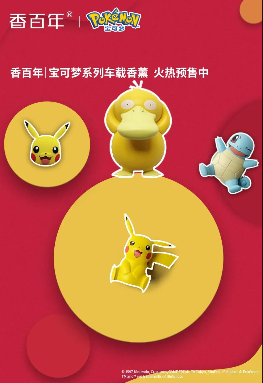 這一次,香百年獲得寶可夢正版授權,突破次元壁跨界結合,將香百年的健康香薰與寶可夢相結合,打造顏值萌動、流溢成香的聯名款車載香薰系列。該系列產品采用法國植物萃取香料,香味舒適自然,輔之予精湛藝術的制作工藝,讓寶可夢趣“味”融合,姿態活靈活現。機靈的皮卡丘、憨厚的杰尼龜、萌力的可達鴨,渾身散發著難以抗拒的萌趣魅力,撩動諸多粉絲的心。巧妙設計的香薰擺件,集芳香馥郁與賞心悅目二者合一,嗅覺與視覺感觀雙重滿足,適用于汽車、居家、辦公室等生活空間。